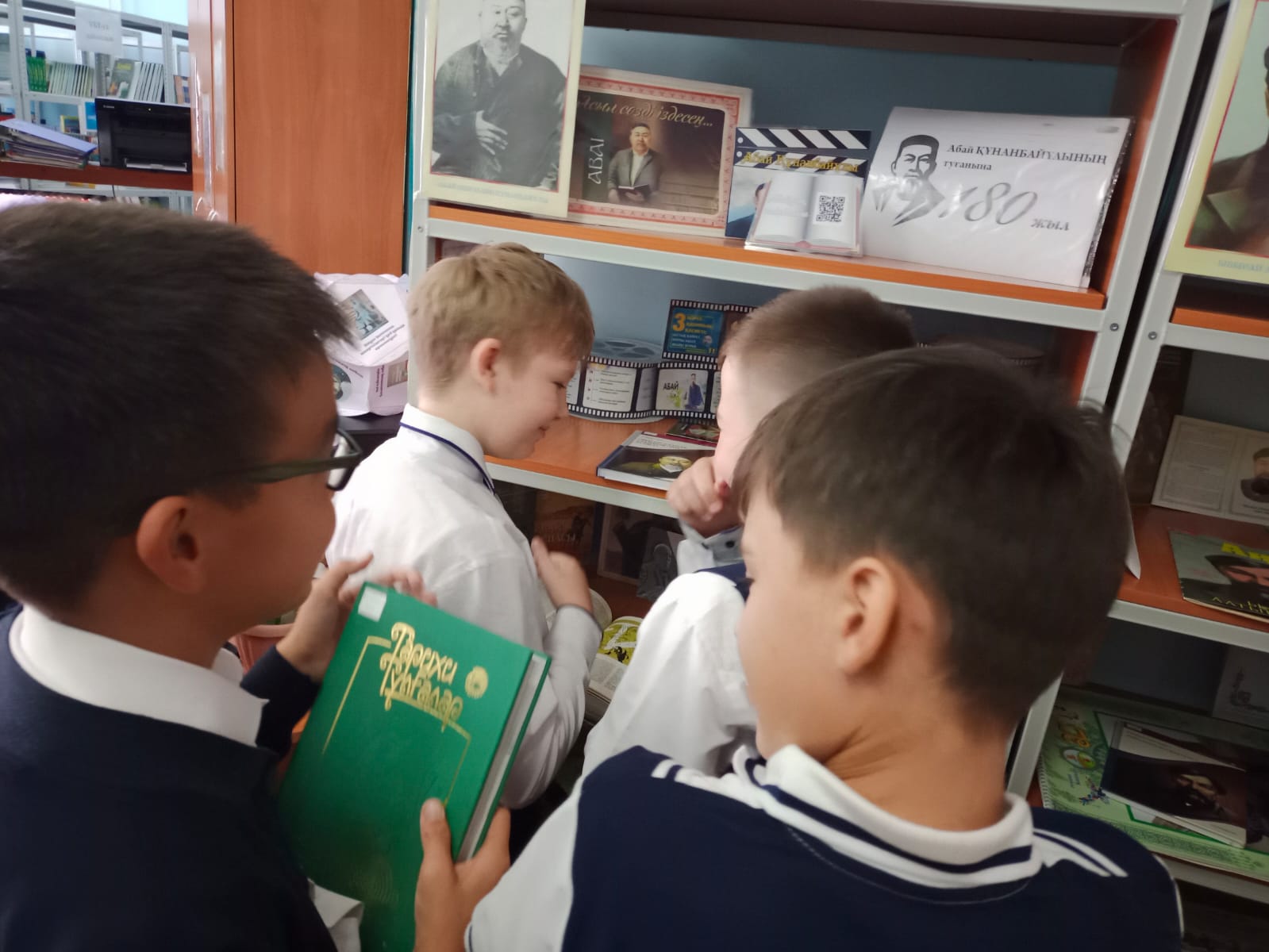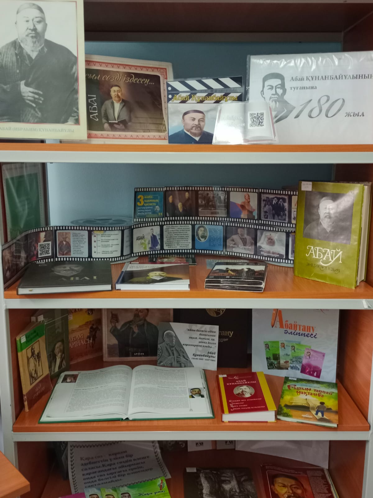 К 180-летию великого казахского поэта и просветителя Абая Кунанбаева подготовлена книжная выставка. На выставке представлены произведения поэта, а также литература, посвященная творчеству и биографии великого Абая.