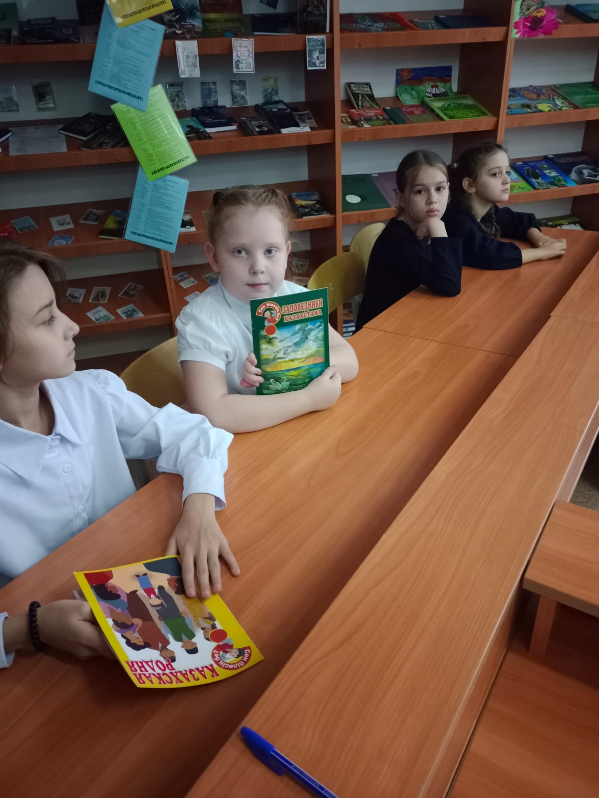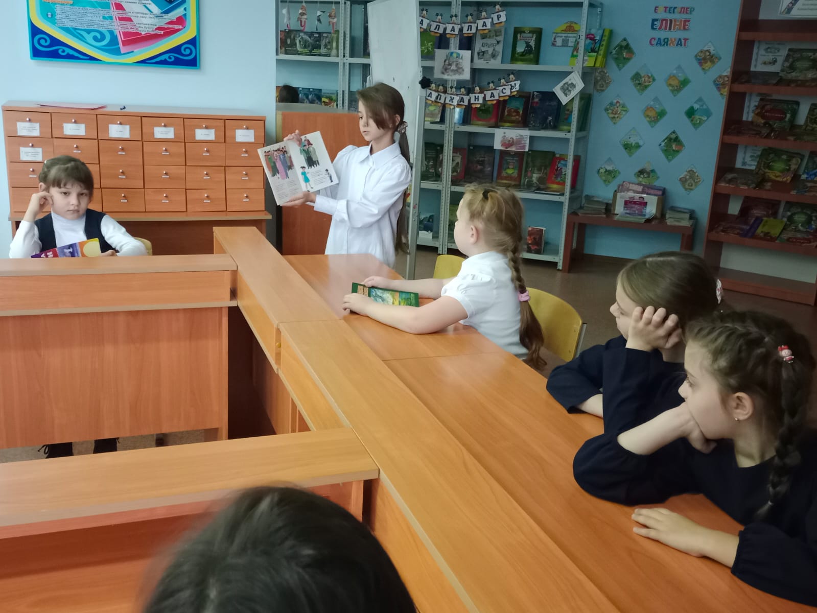 На занятии кружка "Балалар кітапханасы" ребята рассказывают о прочитанных книгах из серии «Сен білесің бе?».