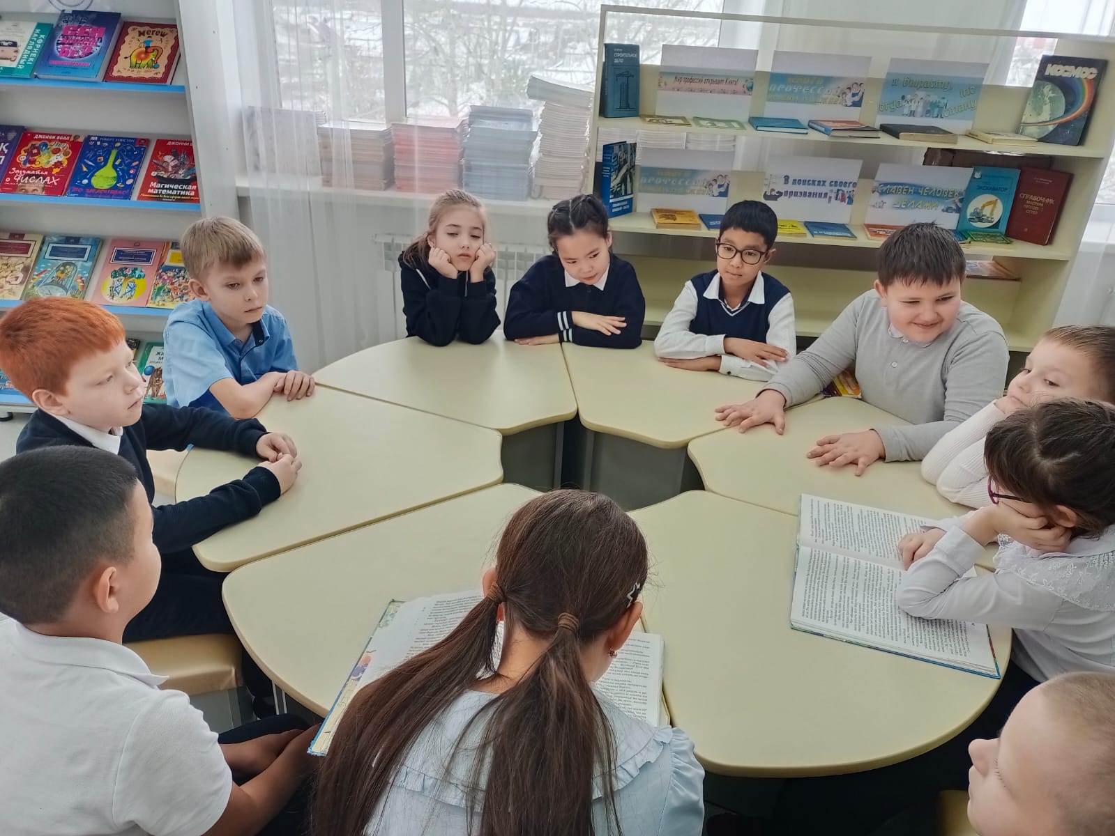 На занятии кружка «Балалар кітапханасы» ребята читают и обсуждают книгу «Волшебные приключениях в Заоблачном мире». Это очень интересная книга, написанная в стиле фэнтези, об удивительных обитателях сказочных миров, о доброте, дружбе, находчивости.